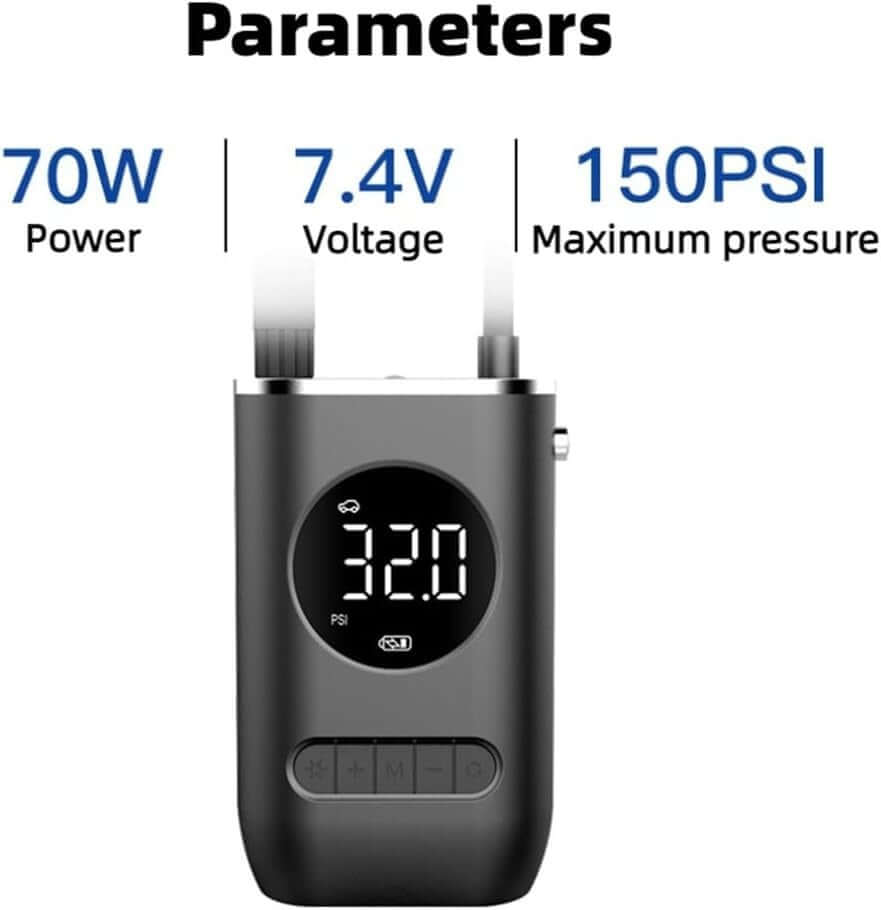 Experience powerful, portable inflation with our Tire Inflator Portable Air Compressor – your all-in-one solution for cars, bicycles, motorcycles, and sports balls. This cordless electric inflator delivers up to 150PSI of pressure, ensuring quick and precise inflation anytime, anywhere. Compact and rechargeable, it fits easily in your glove box or backpack, making it perfect for travel or emergencies. The built-in digital LED display allows you to monitor real-time pressure and preset your desired PSI for automatic shut-off, preventing over-inflation. Equipped with multiple nozzles, it’s compatible with tires, balls, and inflatables. Whether you're topping up your car tires or pumping up a basketball, this inflator provides unmatched convenience and efficiency. Its durable design, bright LED flashlight, and user-friendly interface make it ideal for everyday use or roadside emergencies. Stay ready for anything with this reliable, rechargeable, and high-performing air inflator that puts power in the palm of your hand.