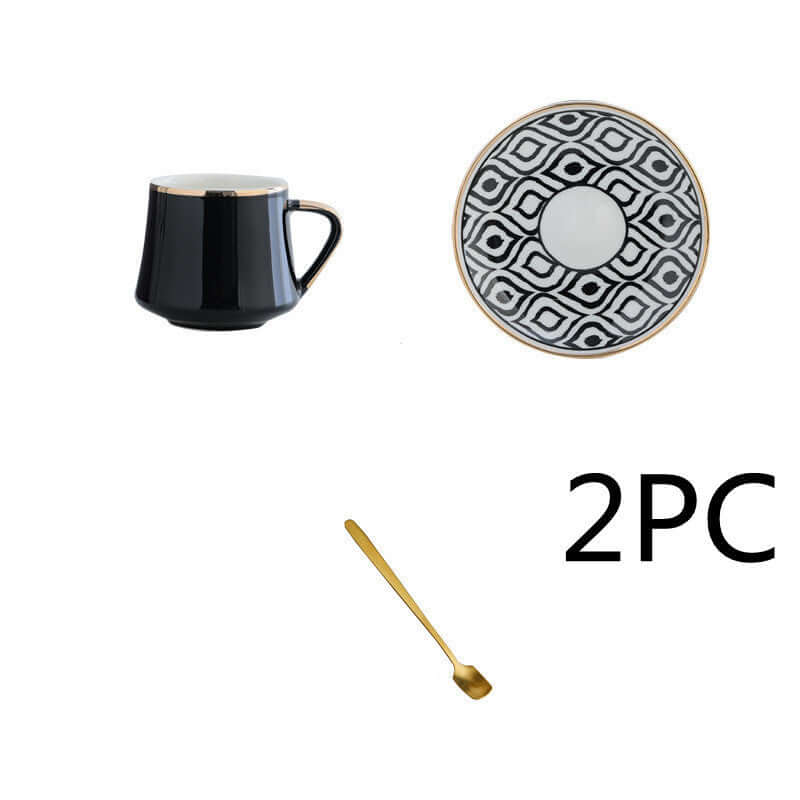 Color: Small size A with 1 cup and 1 saucer, small size B with 1 cup and 1 saucer, small size C with 1 cup and 1 saucer, small size D with 1 cup and 1 saucer, small size 6 cups 6 dishes free spoon golden shelf order note style, black shelf, contact customer service for shipping details